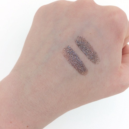 After swatching and wearing them on my lids for a day, I was sorely disappointed. They truly do apply beautifully, but the glitter gradually crumbles off leaving your cheeks, nose, and lashes littered in light specks. Thankfully, the pieces that fell weren’t enormous chunks and what remained on the lid wasn’t terribly splotchy, but still…glitter should stay where it’s placed; otherwise, it looks cheap and messy. And for the price I paid, it just wasn’t worth the hour or two of shimmering beauty it provides.
