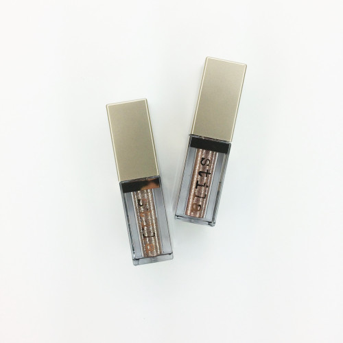 I purchased these close to 2 months ago on a whim after I saw a Stila email blast parading these about with much fanfair! As a glitter addict, I’m prone to hoard shiny, sparkling things, and though I wanted to own the whole line of liquid shadows, I stuck to the basic, universally wearable tones; a pewtery, champagne color called “Smoky Storm” and a slight pinkish, rose gold shade called “Smoldering Satin”. They sure are lookers! Finely milled, colorful specks crowd the gel-like liquid inside and are swiped on with a sponge-tip applicator. So many pretty shades to choose from too!